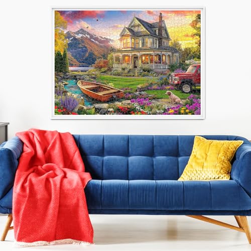 1000 Piece Puzzles for Adults, Autumn Landscape Jigsaw Puzzle, Villa and Dog Jigsaw Puzzles 1000 Pieces, Challenging Game Home Decor Birthday Party Gift Toy for Adults Kids Seniors, 28×20 in