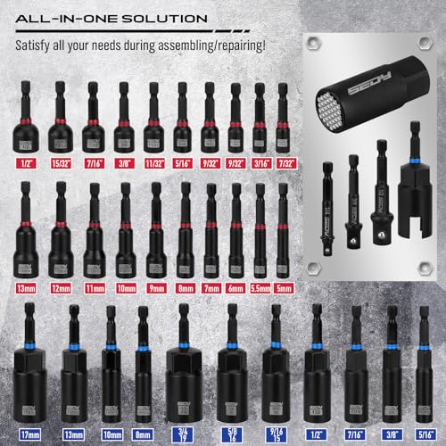 80-Piece Premium Magnetic Impact Nut Driver Set Metric & SAE with Socket Adapters, Bit Holder, Wing Nut Driver, Universal Sockets, Quick Release Extension, Power Bits