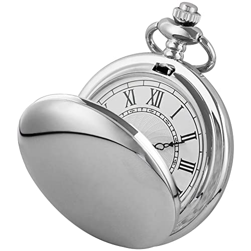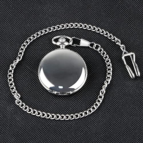 Alwesam Silver Smooth Quartz Pocket Watches Round Roman Numeral White Dial with 37cm Chain Best Gifts