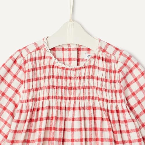 Amazon Essentials x Sofia Grainge Toddler Girls' Long Sleeve Flannel Set, Ivory Raspberry Red Windowpane, 3T
