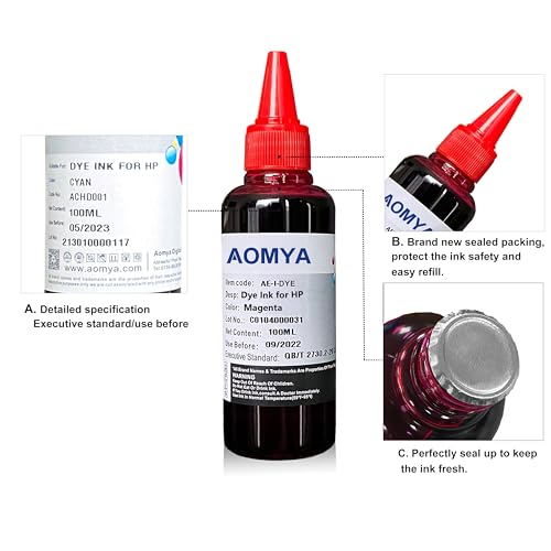Aomya Universal Dye Ink Refill Kit for HP Canon EPN Brother Lexmark Refill kit Compatible Cartridges Refillable Cartridge CISS CIS System 4 Color Set (3BK, C, M, Y)