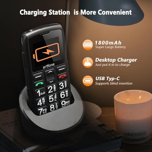 artfone C1+4G Pro Black - Big Buttons Cell Phone for Seniors丨Basic Phone with SOS Button丨Charging Station丨1800mAh丨Loud Speaker丨Talking Clock丨Speed Dial丨Hands-free丨Large Font丨Unlocked Phones丨FM Radio