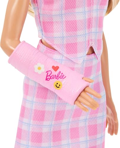 Barbie Fashionistas Doll #243 with Blonde Hair and Pink Arm Cast Accessory, Wearing Plaid Top and Skirt with Pink Loafers