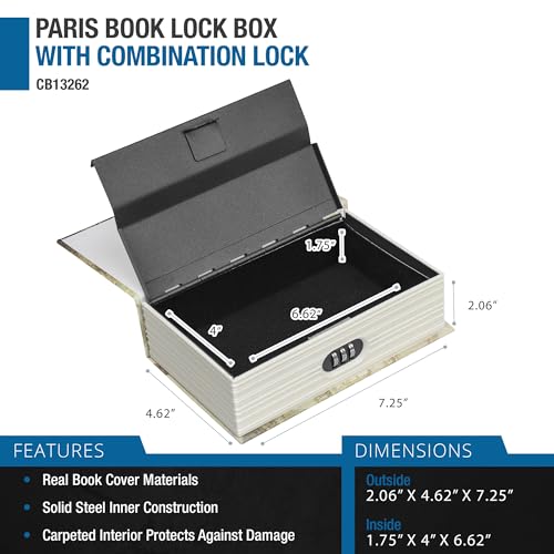 Barska Portable Diversion Book Safe Secret Hidden Storage Lock Box - COMBO PARIS