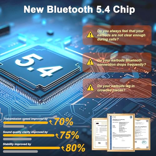 Bluetooth 5.4 Headphones, 3D-Stereo Wireless Earbuds Deep Bass in Ear Buds, 4 ENC Noise Cancelling Mic, 48Hrs USB-C Earphones, IP-X7 Waterproof Headset Sport Gym Workout for Laptop Pad Android iOS