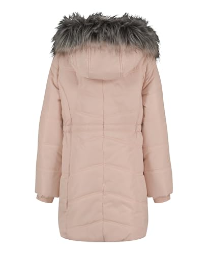 Calvin Klein Girls' Hooded Winter Puffer Jacket, Full-Length Heavyweight Coat with Fleece Lining, Aerial Heavenly Pink, 12-14