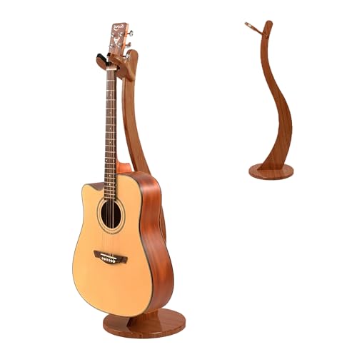 EASIDAYFAN Wooden Guitar Stand Floor - Handmade Bamboo Guitar Music Stands for Acoustic Guitar Players, Wood Guitars Holder with Hanger for Electric Guitar, Banjo (Brown)