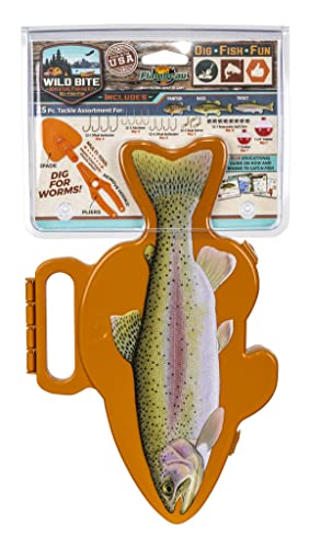 Flambeau Outdoors Wild Bite Fishing Tackle Box Kit | Orange/Trout - Tackle Box for Beginners, 25-Piece Multi-Species Tackle Assortment for Catching Bass/Panfish/Trout, Spade and Plier Multi-Tool