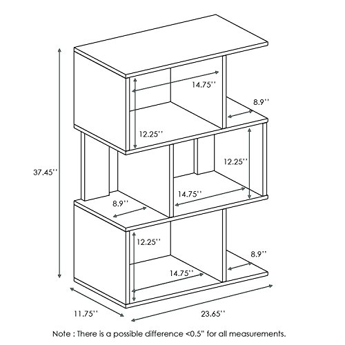Furinno Simply Modern Engineered Wood 3-Tier Open Book Shelf in Espresso