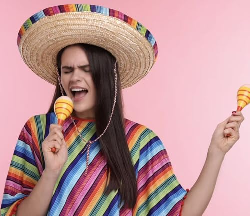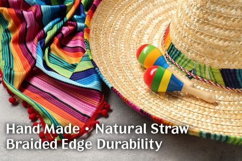 GiftExpress Straw Sombrero Hat 19" Wide, Adult Unisex Mexican-Style Fiesta Hat with Serape Band & Adjustable Chin Strap for Cinco de Mayo, Halloween & Party Costumes