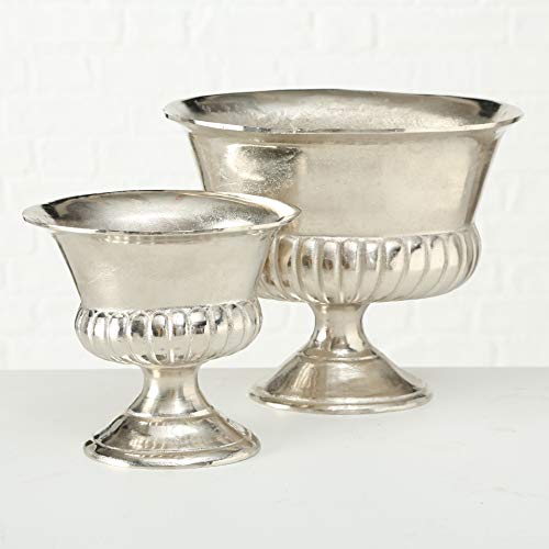 Grecian Champagne Bucket or Trophy-Cup Planters, Set of 2, Silver, Thick Metal, Handmade Aluminum,Table Top Centerpiece, 10.25 and 7.75 Inches Tall, Wide Body, Scallop Edge Details, Pedestal Base