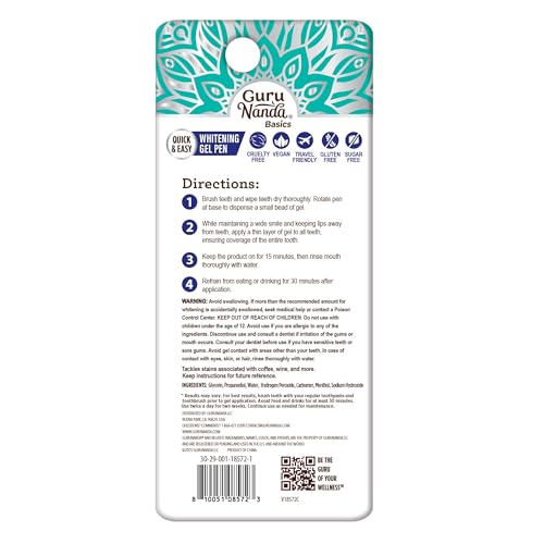 GuruNanda Teeth Whitening Pen,(0.06 fl oz)-20 Uses, Vegan & Gentle on Teeth Pro Formula - Hydrogen Peroxide Whitening Gel Pen, Cruelty-free, Mint Flavor