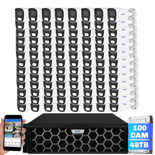 GW Security 128 Channel 12MP NVR 4K Security Camera System with 100 x 8MP PoE Spotlight Color Night Vision Outdoor/Indoor Microphone Bullet Cameras, Smart AI Human/Vehicle Detection, 48TB HDD