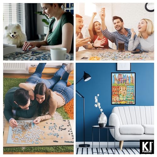 Hard & Challenging 1000 Piece Puzzle for Adults – Cities at Midnight New York by Madalina Tantareanu – Empire State Building, Statue of Liberty & Brooklyn Bridge – Difficult 27x20 Jigsaw by KI Puzzles