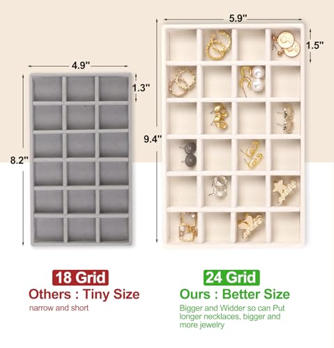 Jenseits 4 Jewelry Organizer Drawer Insert, Stackable Velvet Jewelry Tray Organizer Display Case Storage Containers, Earring Holder Necklace Watch Bracelet Accessary Ring Trays, Gift For Women (Beige)