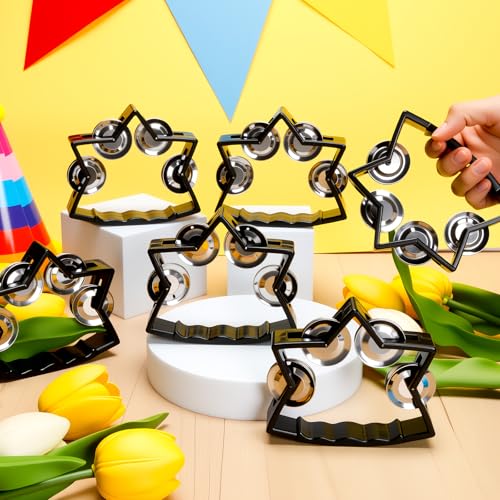 Joyfolk 24 Pack Plastic Tambourine Noise Makers Star Percussion Tambourine Bulk Handheld Musical Percussion Instrument with 4 Bells for Music Performers Musical Party Church Christian (Black)