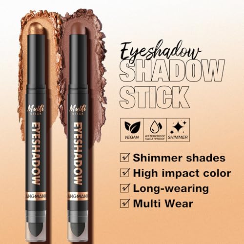 LANGMANNI 8Colors Dual-Ended Cream Eyeshadow Stick Set – Silky Smooth, Waterproof & Transfer-Proof, Built-in Blender Brush, All-Day Matte & Shimmer Wear Eye Makeup(#A)