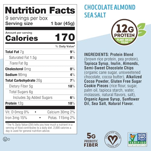Lenny & Larry's Cookie-fied Protein Bar – Chocolate Almond Sea Salt Vegan Protein Bars 9x45g – Healthy Snacks with 12g Plant Protein & 5g Fiber – Gluten free Power Bar, Keto Friendly, Non-GMO & Vegan