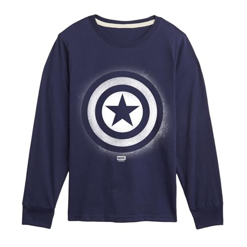 Licensed Character Boys 8-20 Marvel Captain America Logo Long Sleeve Graphic Tee, Boy's, - Navy - Size: Small