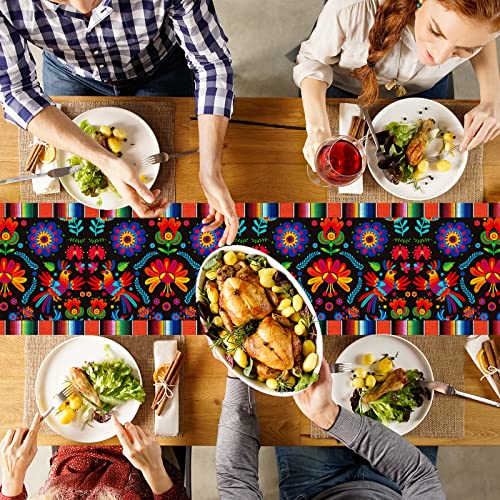 Linen Mexican Fiesta Table Runner Decoration 72×13inch Long Fifth of May Dia De Los Muertos Runners Farmhouse Rustic Runner Day of The Dead Decor and Supplies for Kitchen Dining Home Table Decoration