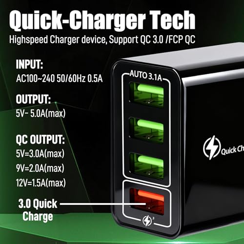 Magvolt Pro Phone Charger,Magvolt Chargers,4-Port Chargers,Multi-Protection System,Travel Fast Charging for Smart Phones,Tablets,Devices with Multiple Ports,Wall Charge for Travel & Home(Black+Black)