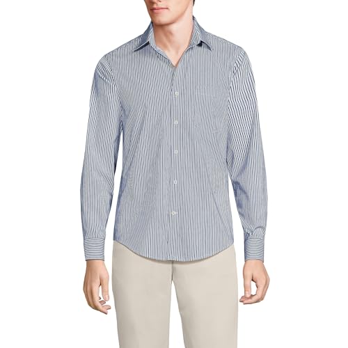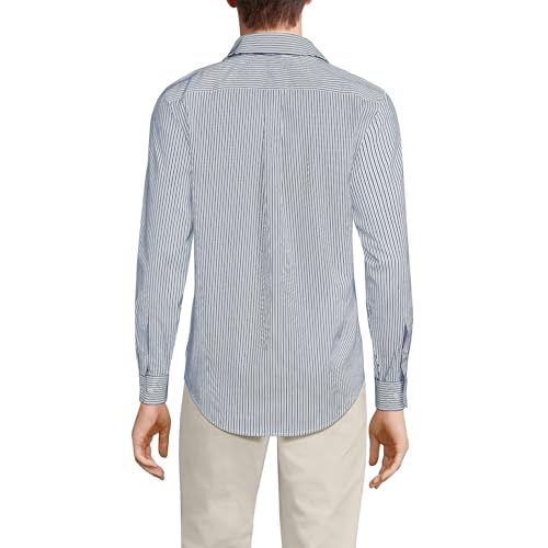Men's Lands' End Traditional Fit Travel Button-Down Shirt, - Navy Fine Stripe - Size: XL