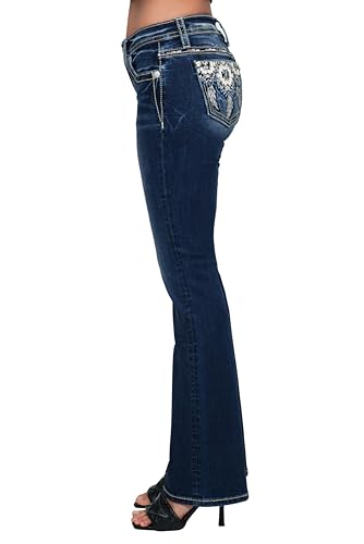 Miss Me Women's M9555BL Mid Rise Feathers Bootcut Jean Blue Pants 27-34 - Gender: female