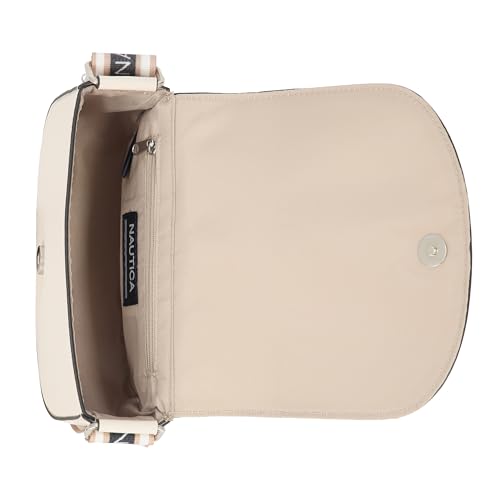 Nautica Delray Flap Crossbody Purse Womens Shoulder Bag, Magnetic Snap Closure Pocket, Small Travel Handbag, Adjustable Strap, Bone (Embossed)