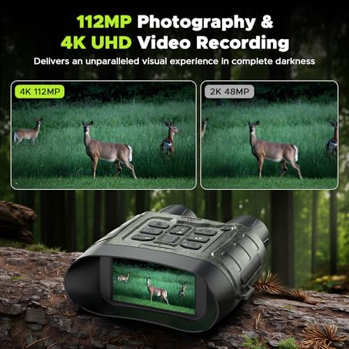 Night Vision Goggles - 112 MP 4K Night Vision Binoculars for Adults, 12X Zoom & 5000mAh Battery, 64GB Card Included, Infrared Night Vision, 1500ft View Range, Perfect for Hunting, Camping & Security