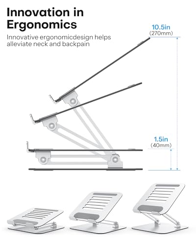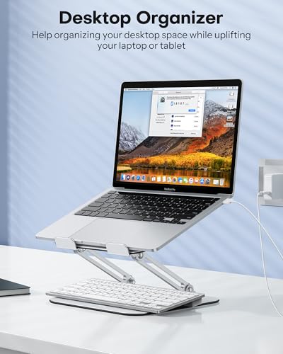 OMOTON Laptop Stand for Desk, Ergonomic Metal Adjustable Laptop Stand, Laptop Holder Riser with Cooling Function, Computer Stand Compatible with MacBook and All Laptops (10-17.2 inch), Silver