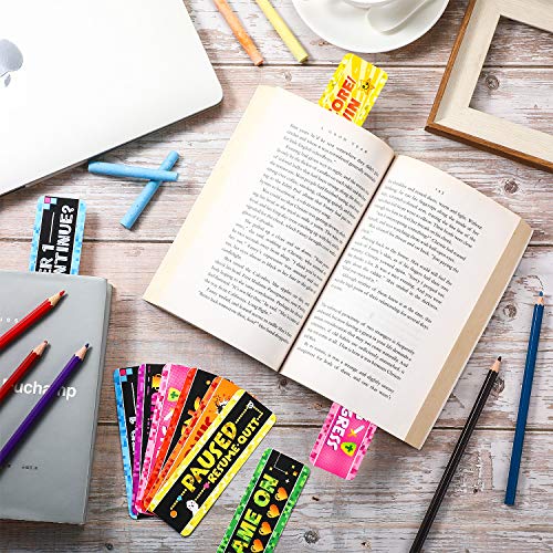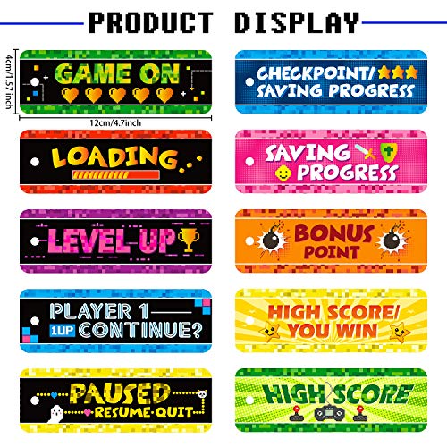 Outus 50 Video Game Bookmarks for Gamer Birthday Party, Pixelated Bookmarks for Pixelated Treat Bag Video Game Party Decoration Paper Tag Card Classroom Awards Teacher