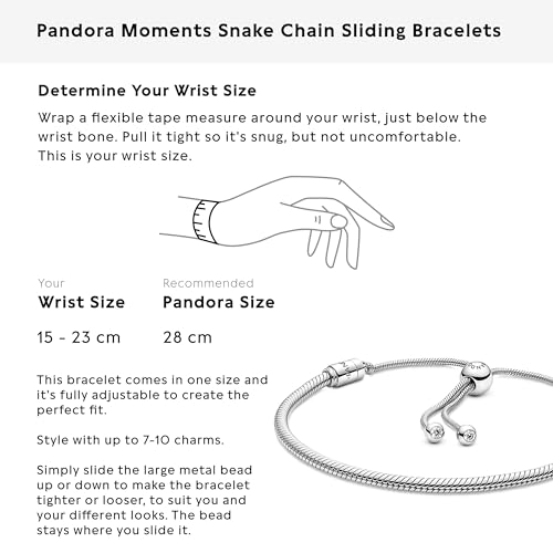 PANDORA Moments Snake Chain Slider Bracelet - Charm Bracelet for Women - Sterling Silver with Clear Cubic Zirconia - 11"
