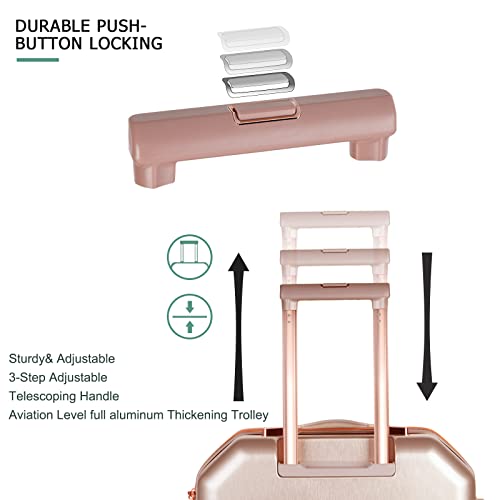 PINPON Luggage Sets 5 Piece, Expandable Hard Luggage Sets with TSA Lock, Carry On Luggage with Spinner Wheels for Women Men, Travel Suitcase Lightweight (12/14 / 20/24 / 28, Rosegold)