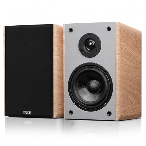 Pyle 6.5" Home Audio Speakers, 2-Way Passive Bookshelf, 240W Max Power, 1" Silk Dome Tweeter, Composite Woofer, Gold Plated 5 Way Binding Post, Rubber Surrounds, Beautiful Wood Grain Finish - Pair