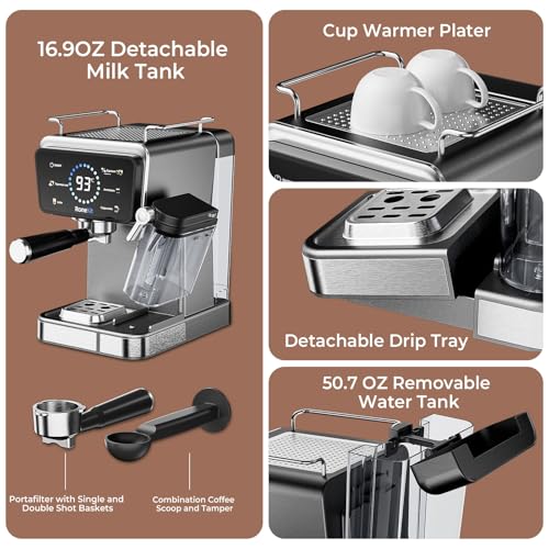 RoneKIT Espresso Machine with Automatic Milk Tank,Espresso Cool & Cappuccino Machine, 20Bar Espresso Coffee Machines, Touch Screen with Timer, 50.7Oz Removable Reservoir