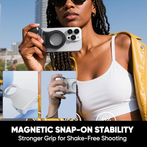 Saker Fun Shot Magnetic Camera Grip & Selfie Light,Multi-Function Magnetic Grip with Fill Light & Wireless Control | Detachable Phone Stand for Content Creators (Auction Hammer White)