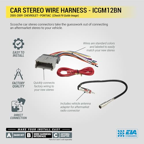 Scosche ICGM12BN Double DIN Radio Install Dash Kit Compatible with Select 2004-09 Non-Amplified Chevrolet and Pontiac Vehicles - Complete Car Stereo Installation Kit - See Vehicle Fit Guide in Images
