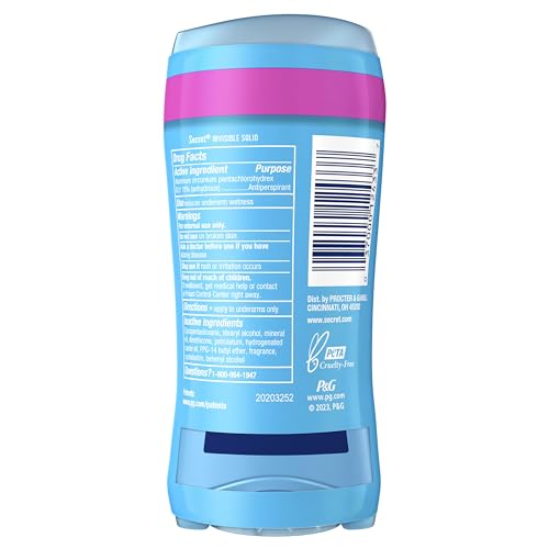 Secret Antiperspirant and Deodorant for Women, 24hr Sweat & Odor Protection, PH Balanced Protection, Gentle on Skin, Invisible Solid, Shower Fresh Scent, 2.6 oz (Pack of 2)