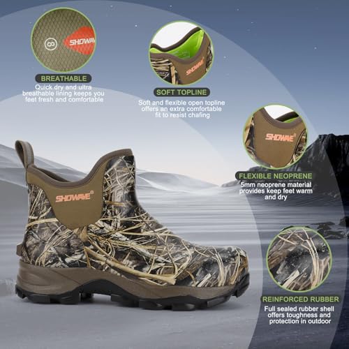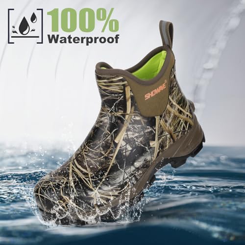 Showave Men's Rubber Boots Waterproof Rain Footwear Durable Short Hunting Boots for Mud Gardening Yard and Chore Working (Size 11,Camo)