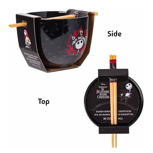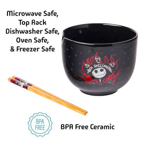 Silver Buffalo Disney Nightmare Before Christmas Jack Skellington Ceramic Ramen Noodle Rice Bowl with Chopsticks, Microwave Safe, 20 Ounces