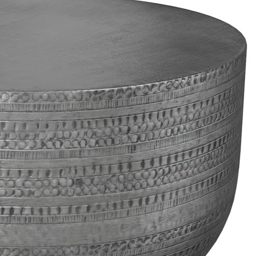 SIMPLIHOME Johnsen 30 inch Wide Metal Coffee Table in Antique Silver, Fully Assembled, for the Living Room and Bedroom