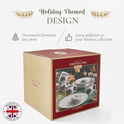 Spode Christmas Tree 12-Piece Dinnerware Set (Service for 4) – Made in the UK – New & Improved – Fine Earthenware Holiday Dinner Set – Microwave & Dishwasher Safe – Christmas Tableware, Festive Set