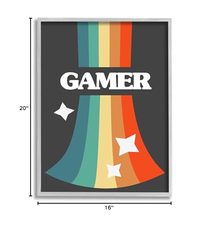 Stupell Home Decor Gamer Text Vintage Retro Video Game Framed Wall Art, Gray Framed - Gray Framed - Size: 20X16