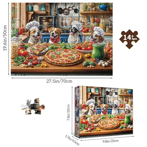 TangMosaic Funny Dog Pizza Jigsaw Puzzle, 1000 Piece Puzzle for Adults, Food Kitchen Jigsaw Puzzle, Animal Pet Lover Challenging Puzzles, Home Decoration Puzzle, Interlock Perfectly No Dust