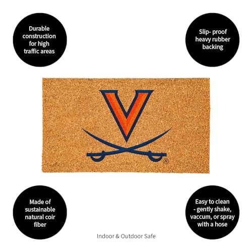 Team Sports America NCAA University of Virginia Natural Coir Doormat | Official Full Color Team Logo | 28 x 16 Inches | Non Slip Back | Front Door Welcome Floor Mats | Indoor Outdoor Entrance Rug