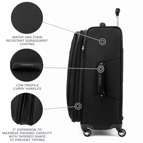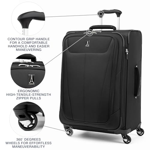 Travelpro Maxlite 5 Softside Expandable Checked Luggage with 4 Spinner Wheels, Lightweight Suitcase, Men and Women, Black, Checked Medium 25-Inch