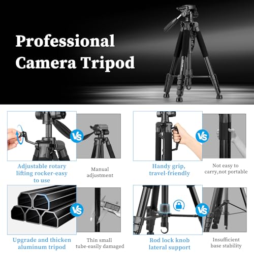 Tripod Camera Tripods, 74" Tripod for Camera Cell Phone Video Photography, Heavy Duty Tall Camera Stand Tripod, Professional Travel DSLR Tripods Compatible with Canon Nikon iPhone, Max Load 15 LB