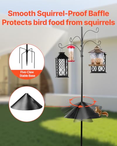 VEVOR 4-Hook Wild Bird Feeder Stand Pole, 92 Inch Bird Feeding Station Kit, 31/32 inch Diameter Bird House Hanging Hooks with Squirrel Guard Baffle, Heavy Duty Multi-Feeder Stand Easy to Install