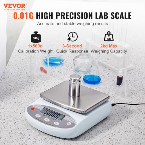 VEVOR Analytical Balance, 2000g x 0.01g Accuracy High Precision LCD Food Scale,13-Units Conversion Electronic Scientific Scale