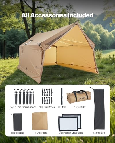 VEVOR Camping Hot Tent, 2 Persons Cabin Hot Tent with Stove Jack, Waterproof Winter Tents Shelters with Vents, Lightweight & Portable 4 Season Tents for Hiking Fishing Hunting Backpacking